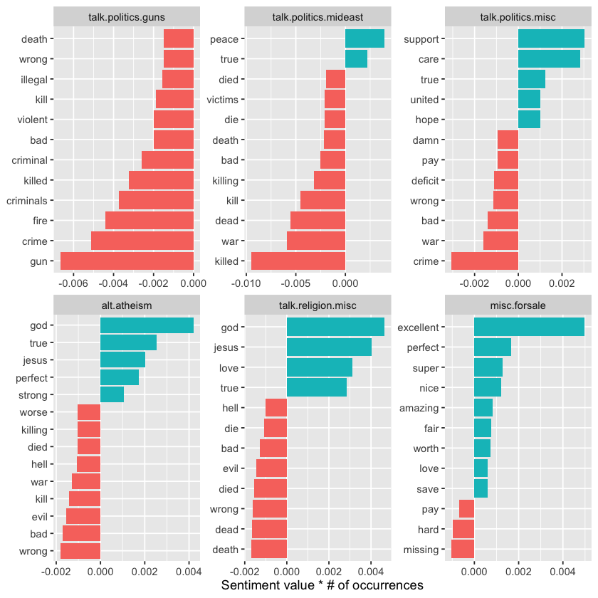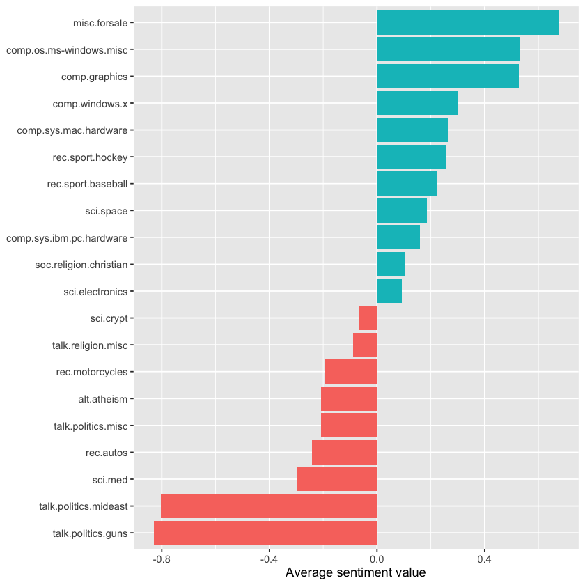 Earlier, we examined how words like “not” and “no” affect sentiment analysis of Jane Austen’s novels—such as whether phrases like “don’t like” cause passages to be misclassified as positive. Since the Usenet dataset is a much larger and more contemporary corpus, we might want to explore how sentiment reversal occurs in this text.
