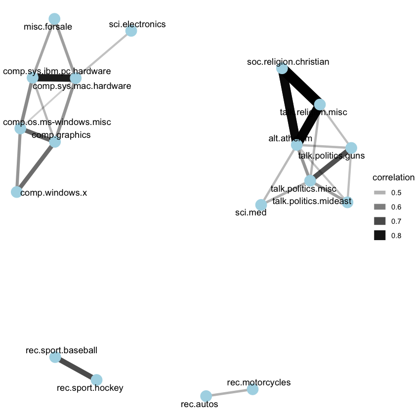 To begin, we’ll identify and count all the bigrams in the Usenet posts.